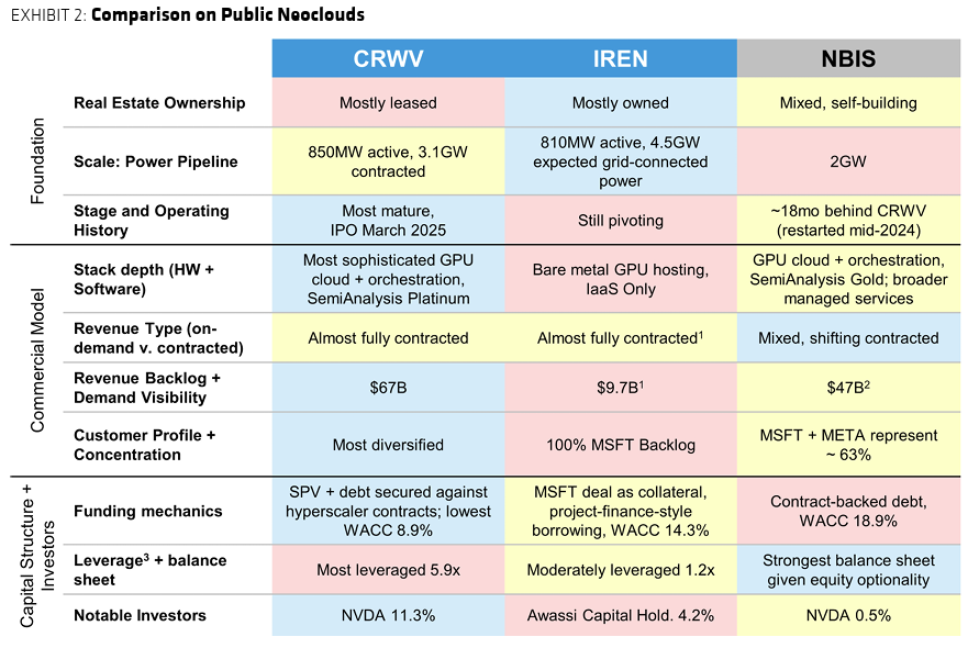 伯恩斯坦分析师高度评价CoreWeave的“商业模式”,认为其优势在于“软件栈深度、合约收入与按需收入的结合、强劲的订单储备以及日益多元化的客户群体”。不过报告同时指出,IREN在基础设施方面具备优势,这主要得益于其庞大的实体地产布局,而非依赖于租赁数据中心容量。