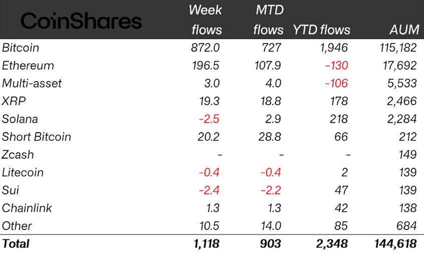 加密货币ETPs强势吸金11亿美元,创一月以来最大单月增幅