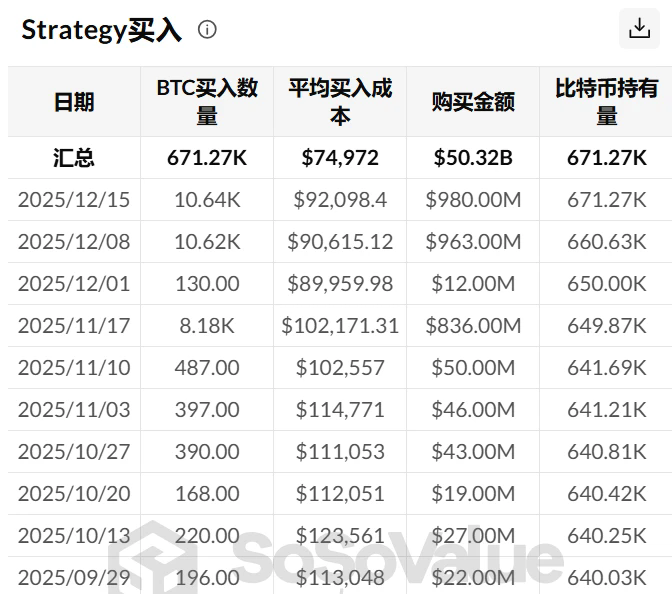 在比特币价格震荡走弱、市场情绪偏谨慎的阶段,Strategy却再次给出强烈的“反向信号”。过去两周内,其单周增持比特币超1万枚、投入资金超过9亿美元,即便在自身mNAV跌破1的压力下,依然选择加仓而非减持。截至目前,Strategy持有比特币数量已接近67.1万枚,总市值超500亿美元,这种持续扫货的行为,正在成为市场判断中长期底部信心的重要参考指标。