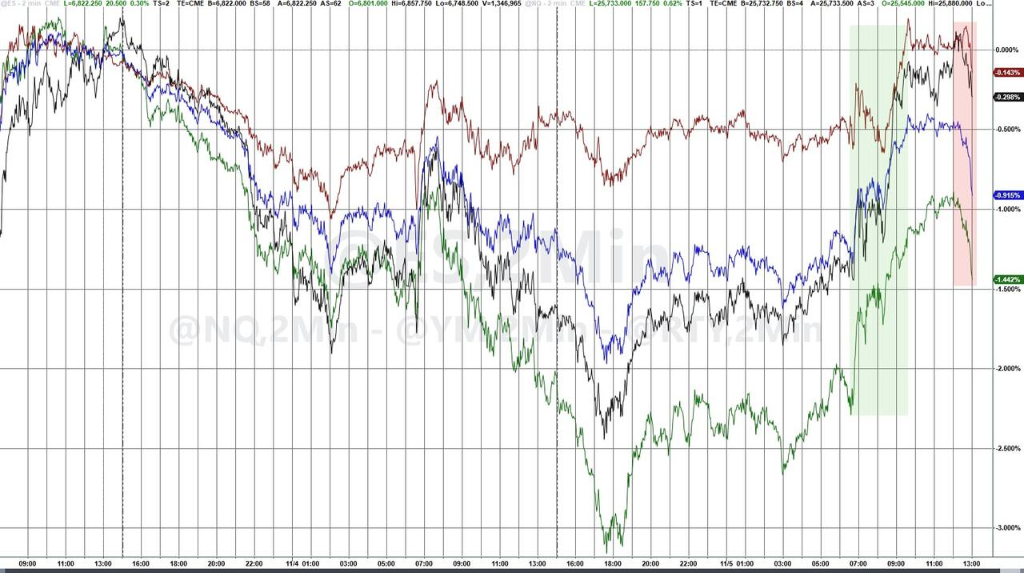 ● 美股盘前,据华尔街见闻,美国公布的10月ADP就业报告新增就业4.2万人,好于市场预期,并扭转了上月数据修正后为负的局面。不过投资者延续了前一日暴跌后的谨慎情绪,美股三大股指期货仅微幅上涨。
