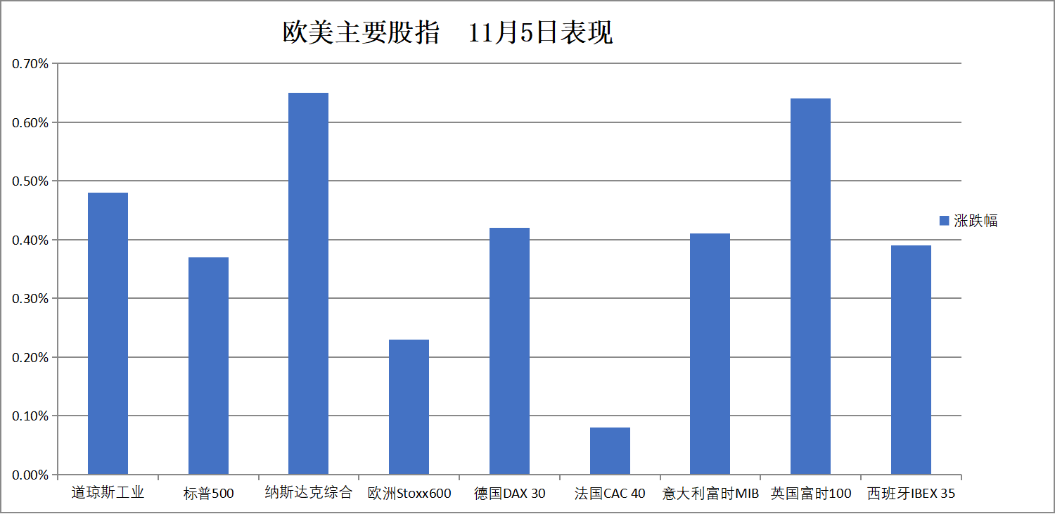 (11月5日 欧美主要股指表现)