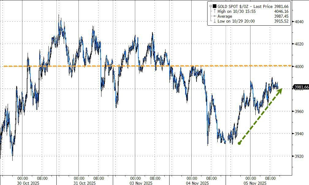● 纽约尾盘,现货黄金反弹1.28%,报3982.32美元/盎司。