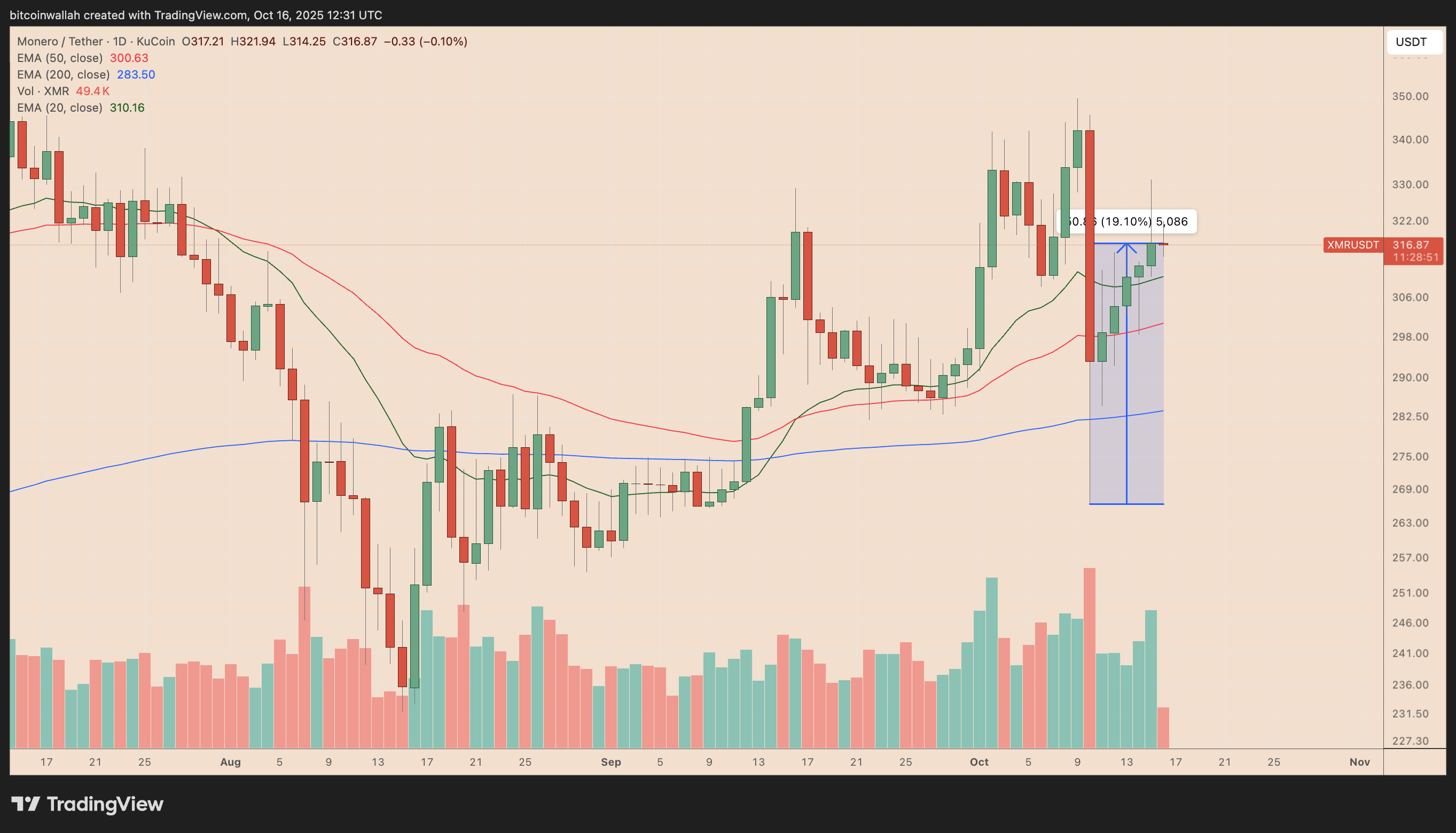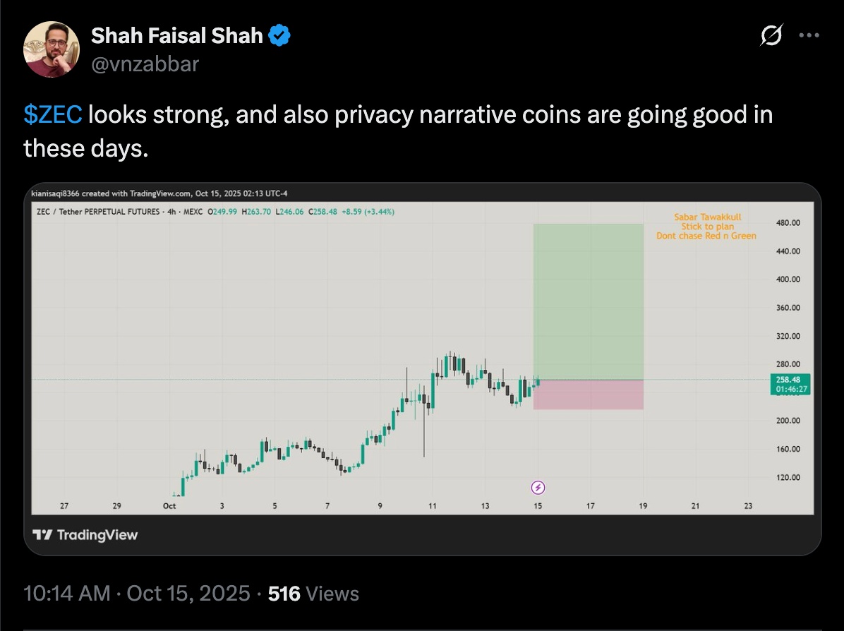 因此,当Zcash在超卖条件和Ravikant的支持下大幅反弹时,它向交易员发出了隐私币市场准备回暖的信号。