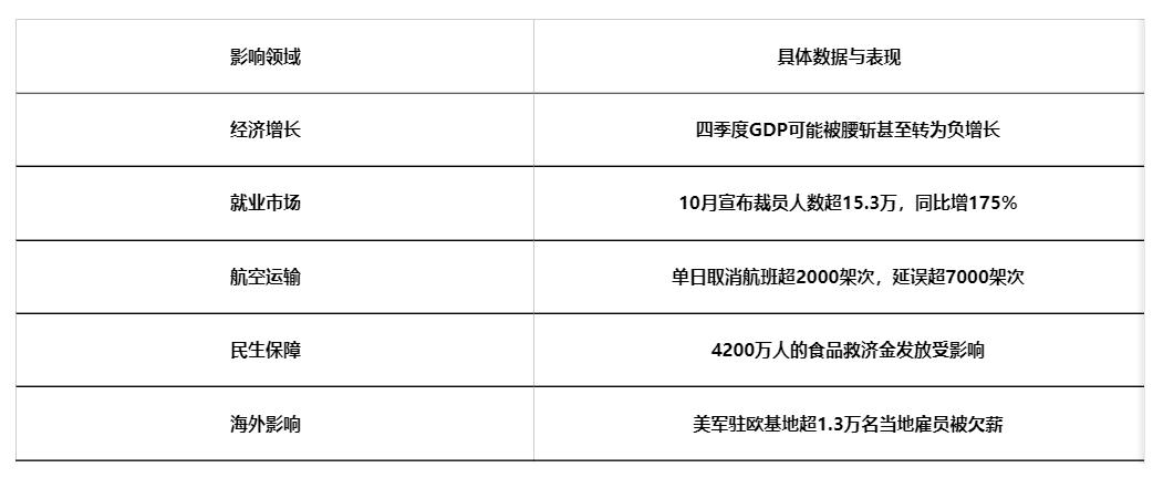 美国政府停摆一个多月来,经济警报已从低声提醒变为震耳欲聋的警告。从宏观经济到普通民生,这场政治僵局的代价正在全面显现。