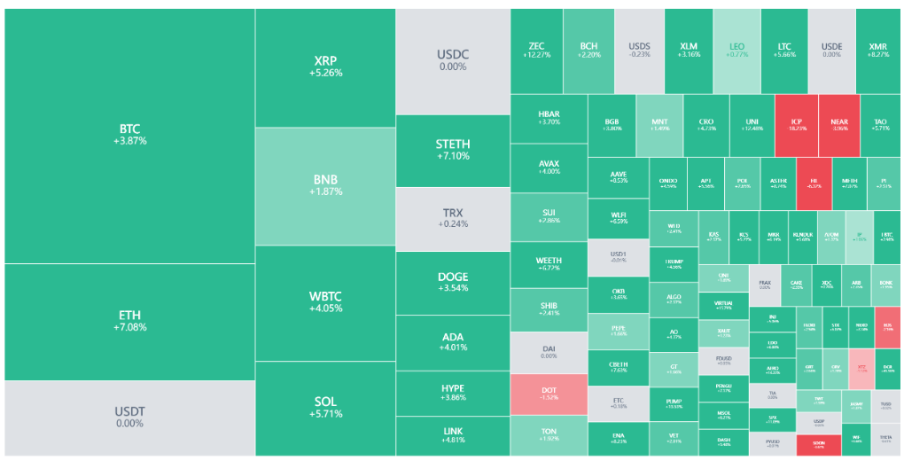 随着政府停摆接近尾声,金融市场已开始做出积极反应。加密货币市场在近期回调后小幅反弹,比特币日内涨超2.6%,升破105000美元;以太坊升破3600美元,日内涨幅达6.13%。
