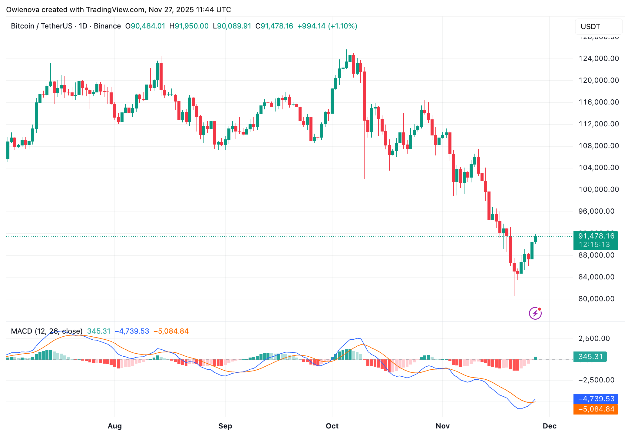 比特币日线图显示价格为91,478美元|数据来源:Tradingview.com上的BTCUSDT交易对