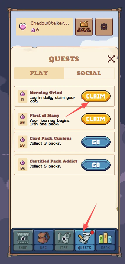 此外,官方新出小游戏(链接:https://reppo.ai/login)也有每日任务,通过谷歌邮箱进行登录,点击“QUESTS”后完成每日签到任务。