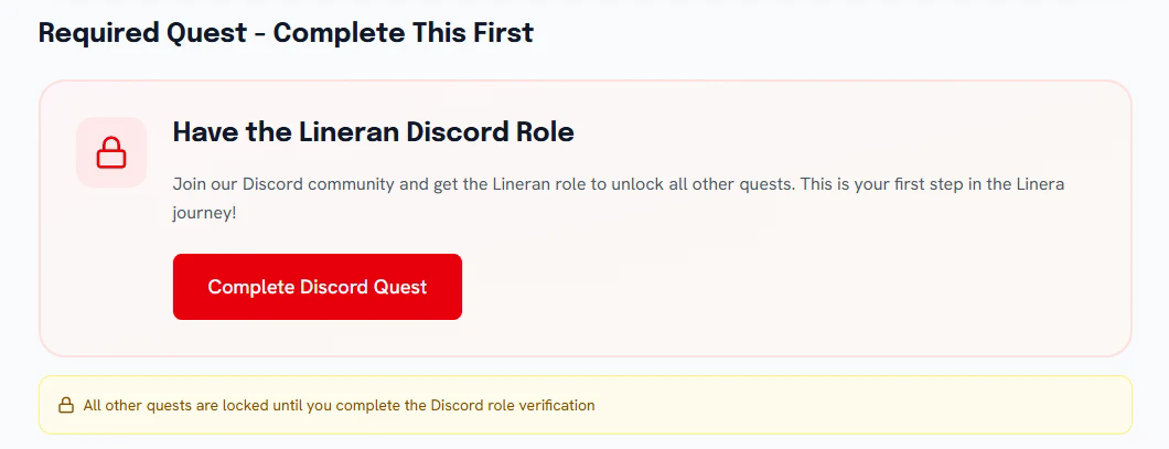 进入官网(链接:https://portal.linera.net/quests),连接钱包完成账号登录,首先需加入官方 Discord 领取角色解锁任务。