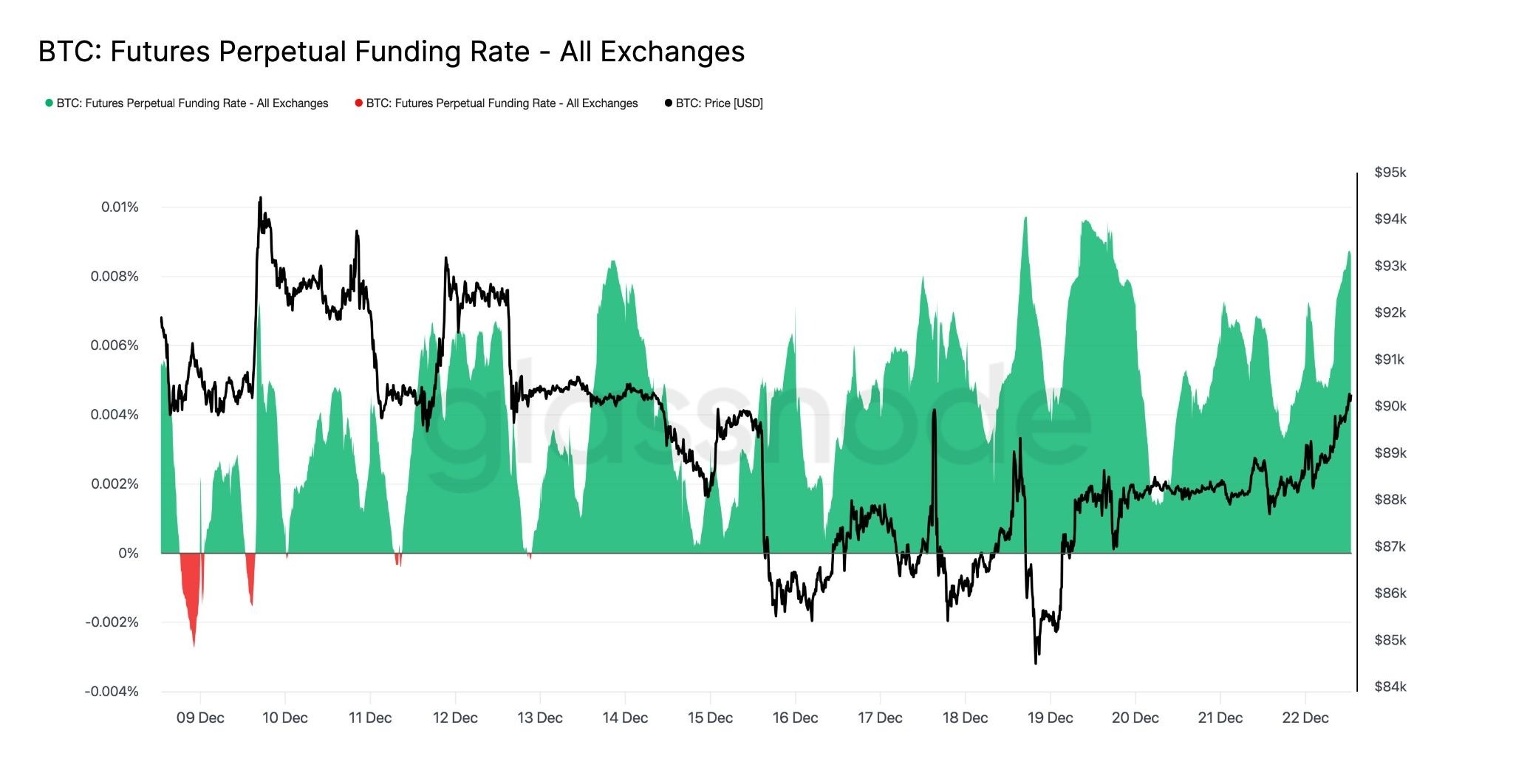 比特币的预付费利率最近有所上涨。来源:Glassnode