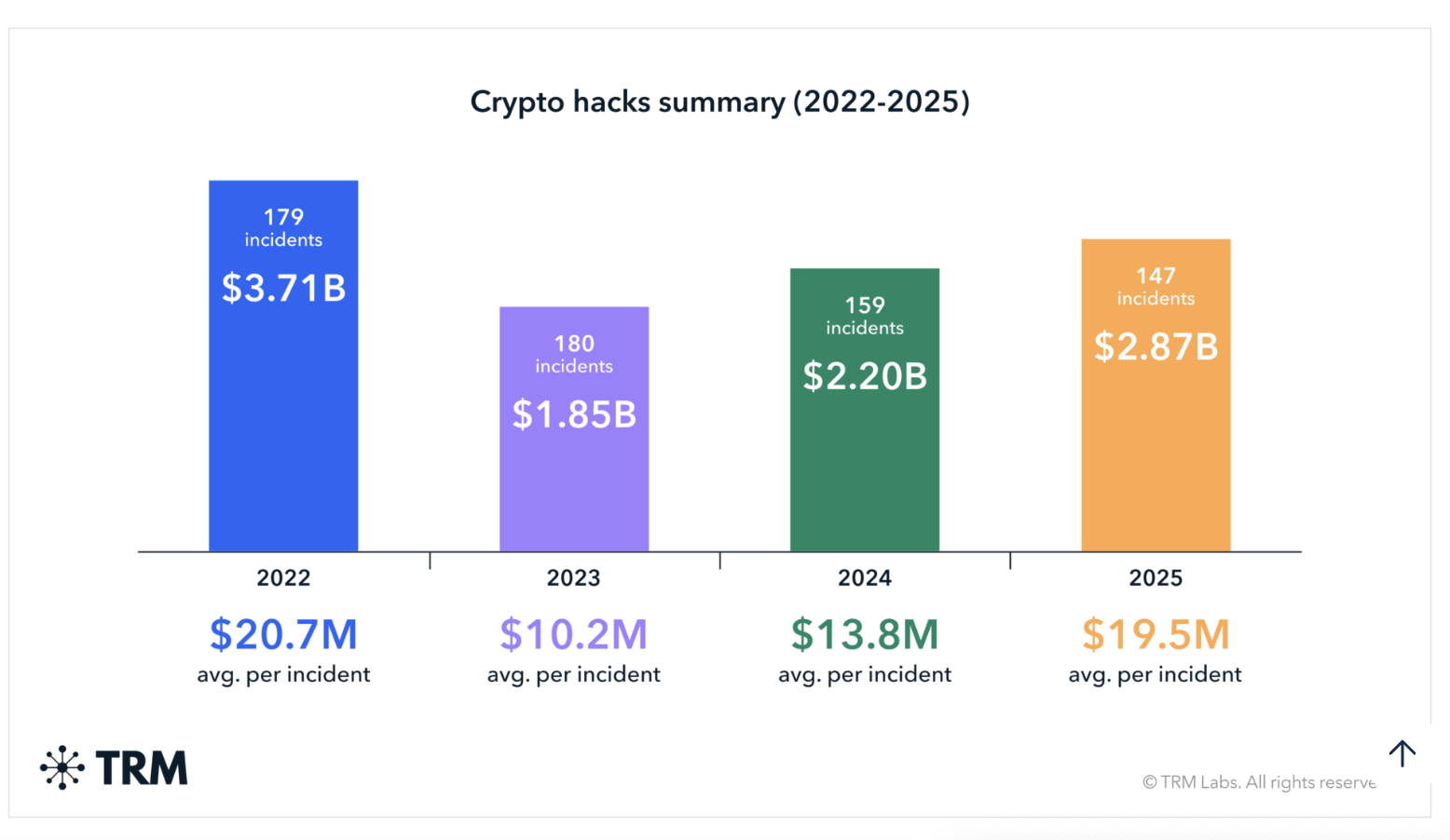 CertiK在2025年12月披露,当年加密领域因黑客攻击损失达33亿美元。该公司指出供应链漏洞已成为危害性最大的威胁,仅两起事件就造成14.5亿美元损失,其中包括2025年2月Bybit平台遭黑客攻击损失的14亿美元。