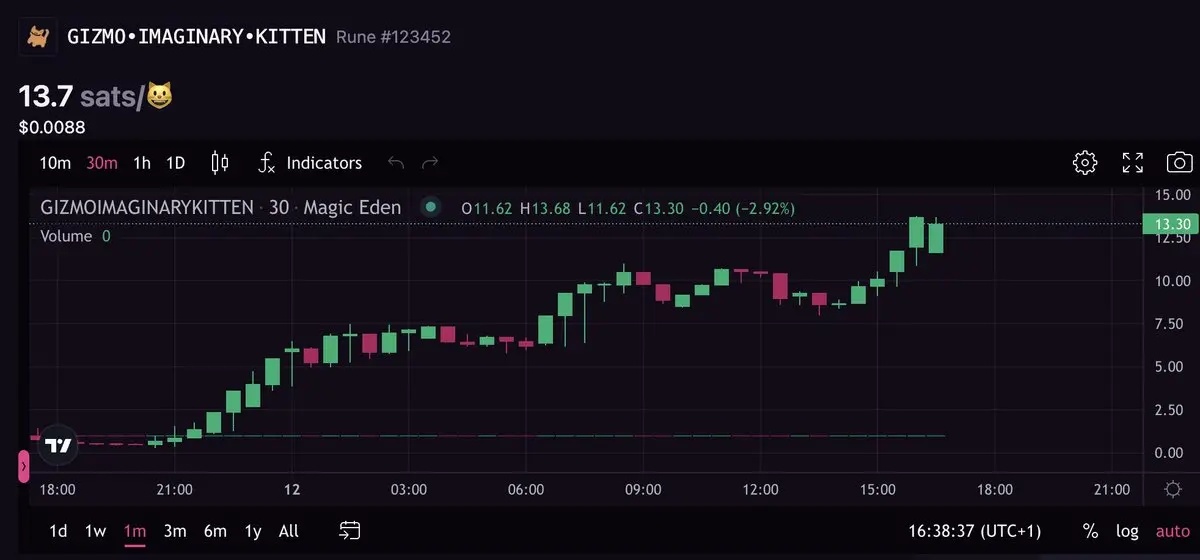 一个例子是 GIZMO•IMAGINARY•KITTEN 代币,它免费铸造,现在的交易价格是首次上市价格的 26 倍。