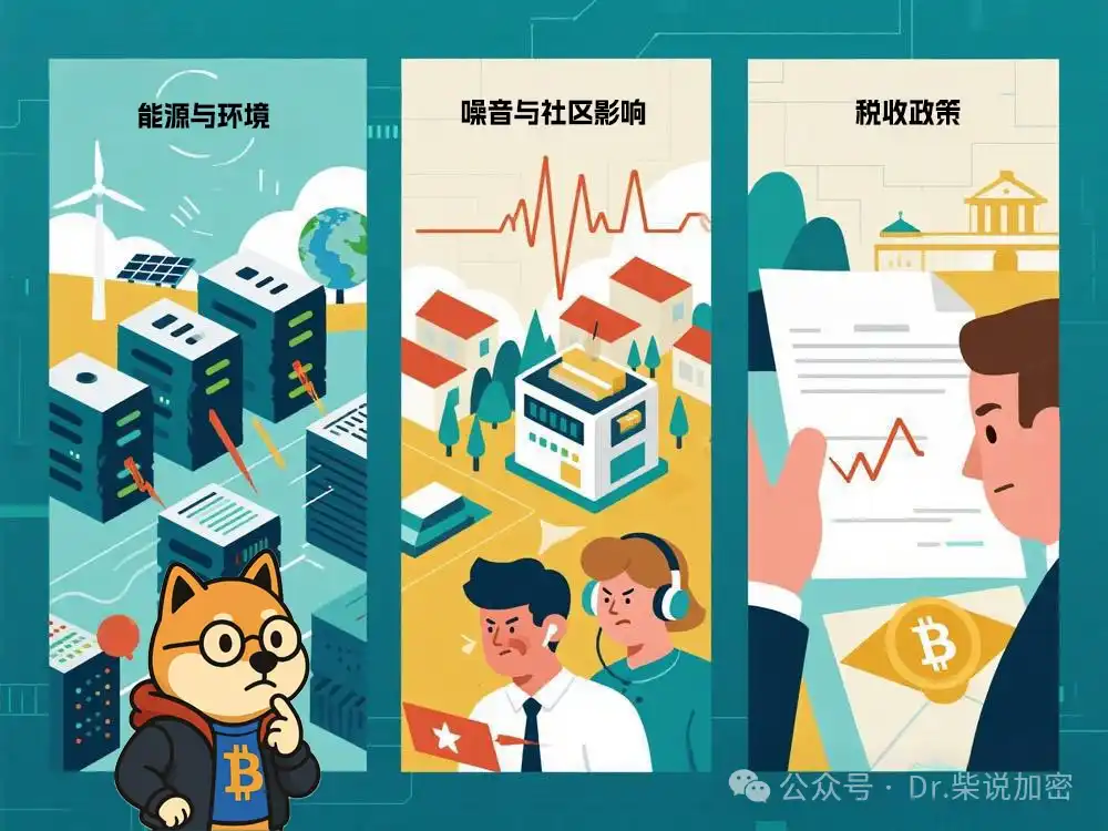 噪音与社区影响:大型矿场产生的噪音甚至成为居民诉讼的导火索,部分州政府要求矿场采用降噪设备。