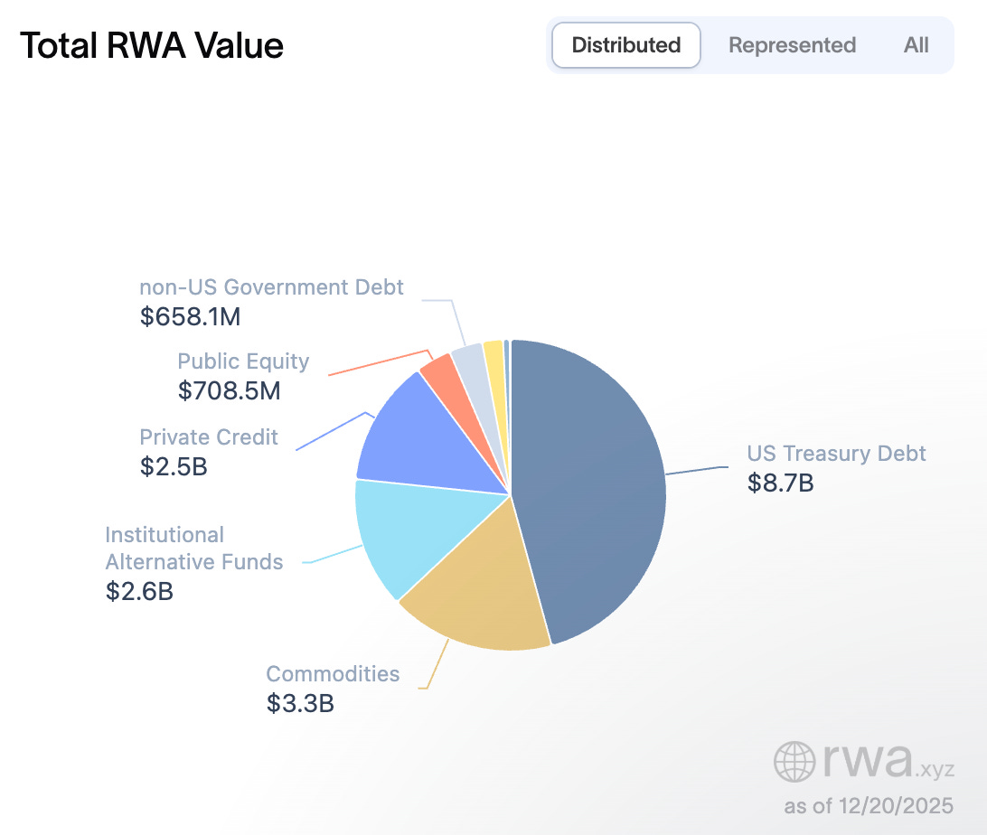 相比之下,如今正在蓬勃发展的代币化产品外观刻意显得平淡无奇。它们与传统金融工具高度相似,主要利用区块链技术来提升结算效率、透明度和基础设施层的可编程性。代币只是资产的包装,而非对资产本身的重新发明。