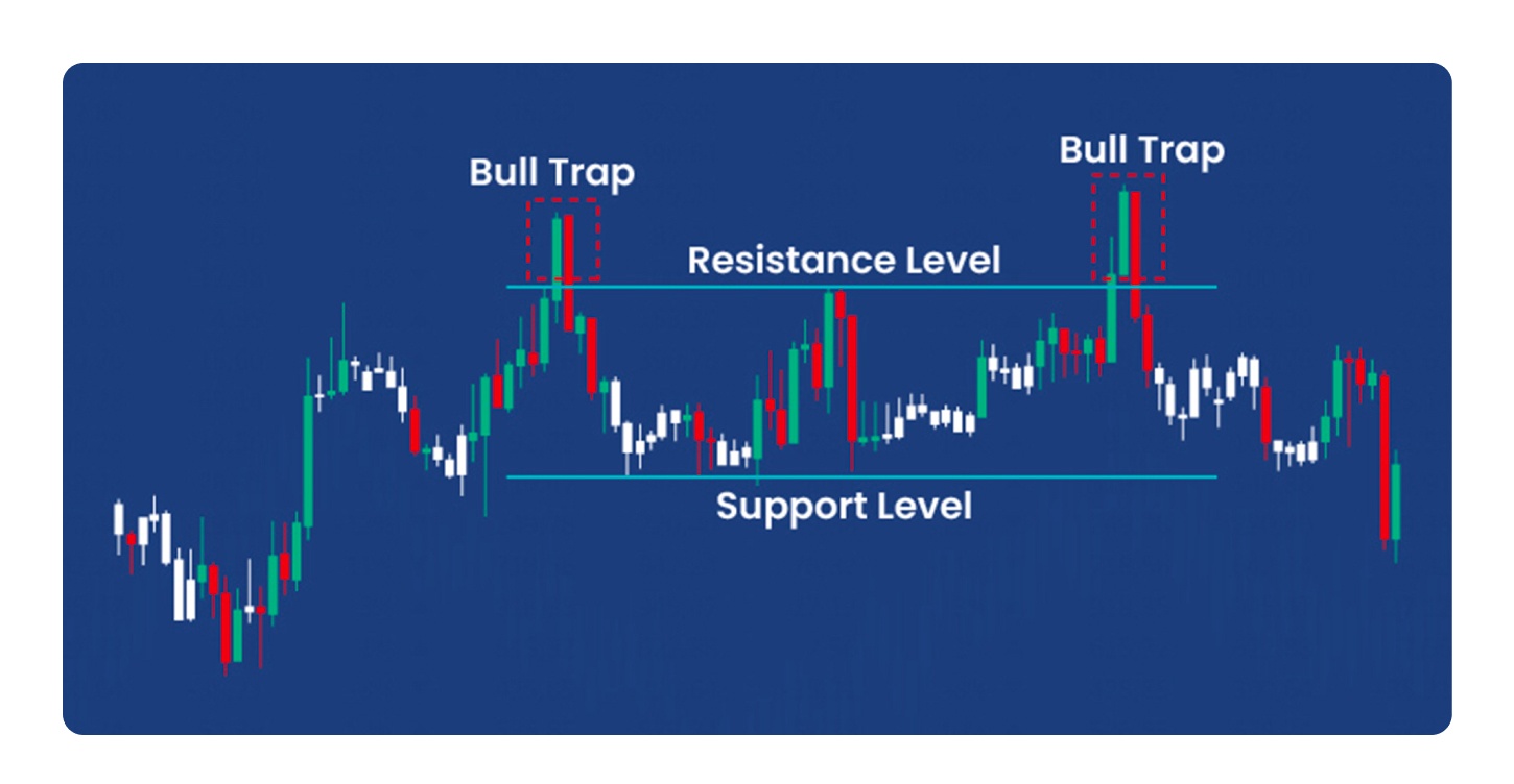 看涨陷阱发生在价格突破阻力位,吸引买家入场后反转下跌,导致后期多头陷入亏损。