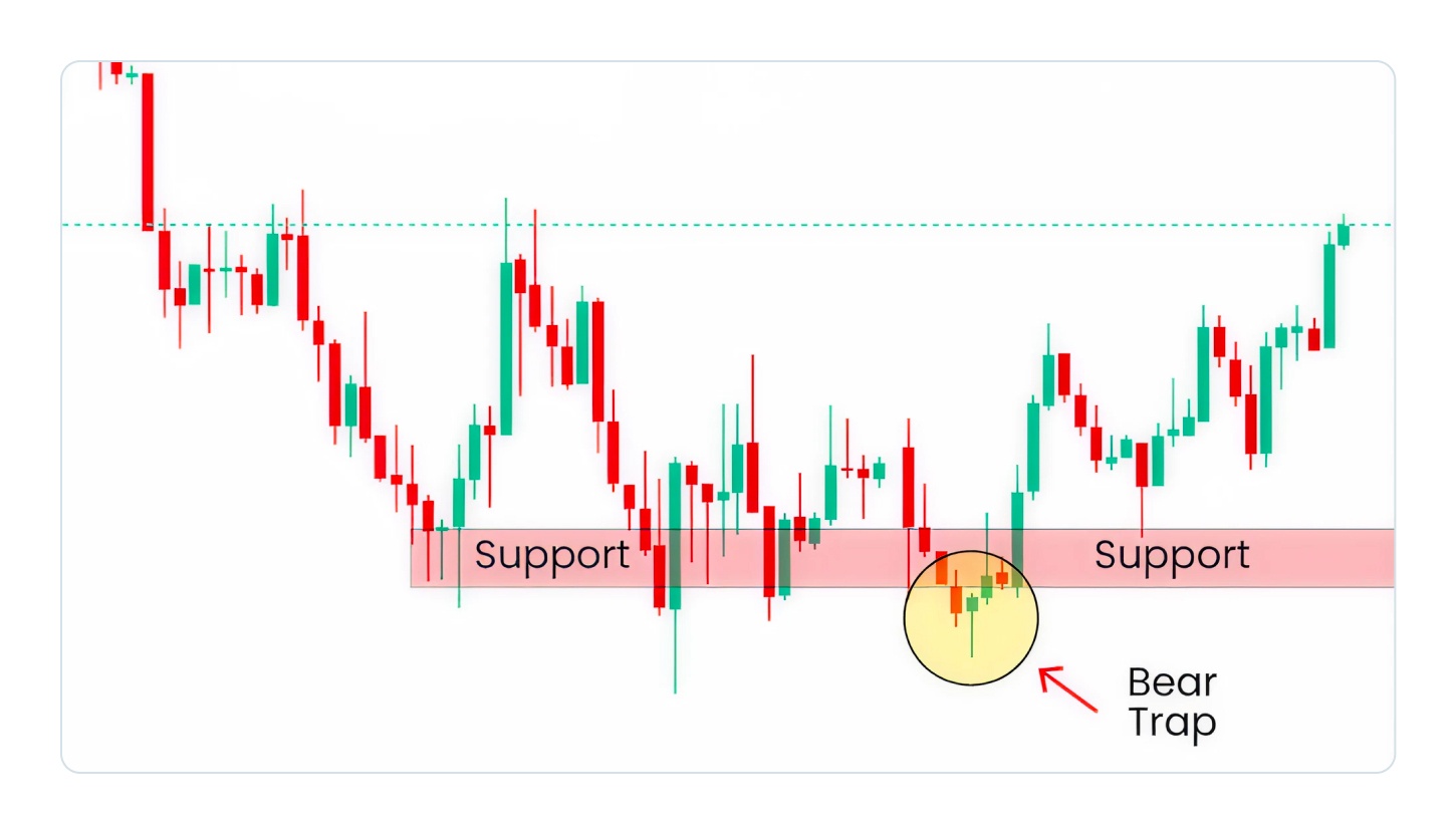 看跌陷阱发生在价格跌破广受关注的支撑位,吸引交易者做空,然后迅速反转上涨,迫使平仓并挤压头寸。