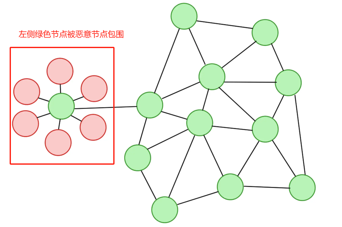 在 Sybil 攻击中,攻击者将节点与网络的其他部分隔离,使其无法参与共识过程或接收有效的交易信息。