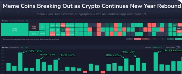 链上分析平台Santiment此前在X平台发文分析称,本轮Meme币反弹始于圣诞节后几天,当时散户交易者中的FUD情绪达到了最高水平,而加密市场最先反弹的往往是被散户投资者最不看好的资产机会。