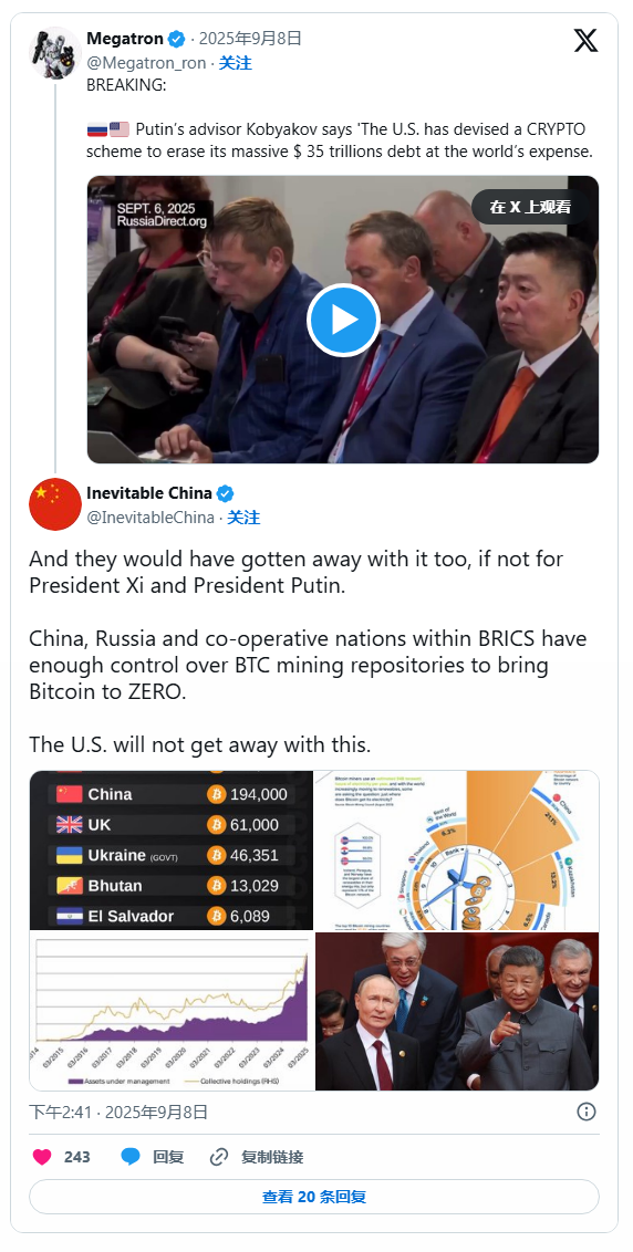 Gupta 补充指出,比特币矿机供应链过度集中于中国,这在地缘政治紧张的情况下,可能构成对比特币协议发起「51% 攻击」的重大风险。他进一步表示,随着特朗普政府近期对中国加征的高额关税——未来几周内可能升至 155%——这一风险已进一步升级。
