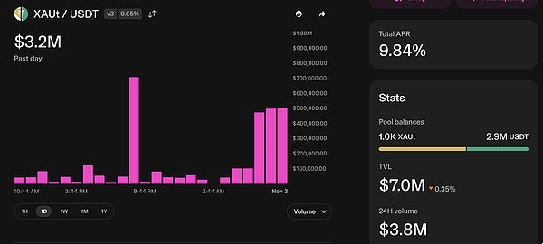 他们还可以为PAXG/USDC或XAUT/USDT等交易对提供流动性,例如在Avalanche上的LFJ.gg和以太坊上的Uniswap等平台上,或者使用Pendle等收益聚合器来实现固定收益策略。与以往一样,收益取决于需求和激励机制——高回报通常伴随着更高的智能合约风险。XAUT还受益于与TON区块链集成,可实现低手续费质押。