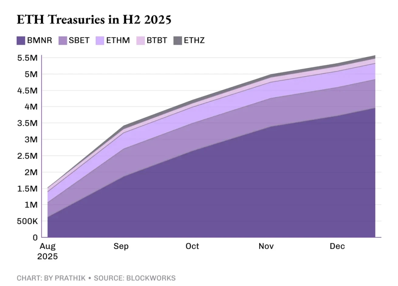 截至目前,持仓规模前五的ETH财库企业,共计持有556万枚ETH,占总供应量的4.6%以上,按当前价格计算,价值超160亿美元。