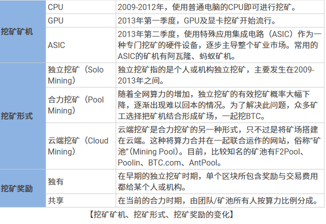 随着比特币价格的上涨,越来越多人的加入,挖矿行业也发生了许多变化,主要体现在三个维度:矿机、挖矿形式、挖矿奖励。