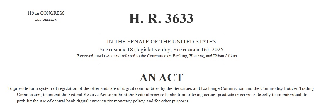 《清晰法案》(CLARITY Act)于 9 月在众议院获得通过,并提交参议院,成为《射频信息获取法案》(RFIA)。来源: Legiscan