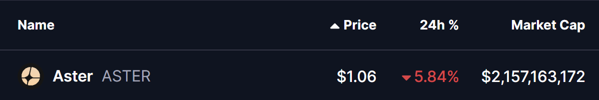 今日主流加密货币普遍出现小幅回落,比特币(BTC)和以太坊(ETH)均跌破关键价位,其中ETH跌幅超过3%。这次短期调整对包括去中心化交易所龙头代币Aster(ASTER)在内的多个山寨币形成压力。