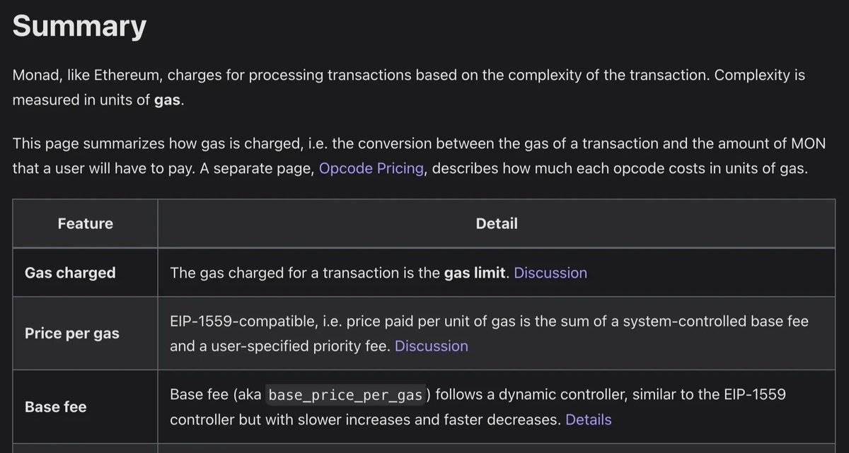 《Gas 定价文档》可以帮助您了解 Monad 相较于以太坊在各种 Gas 操作码上的变化,这些变化是您在 Monad 上部署时需要特别注意的。
