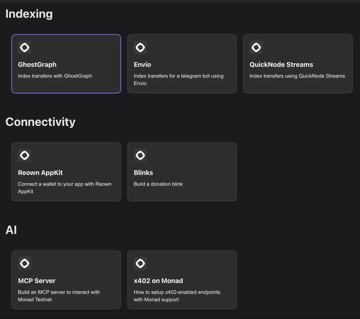 如果您是 Web3 新手或者正在寻找应用开发指南,Monad 文档中有一个非常出色的部分,专为希望在 Monad 上开始开发的开发者准备。