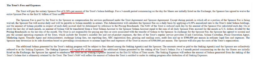 具体而言,当投资者购买 BSOL 份额后,Bitwise 会以资金购买等量的 SOL,并将其托管在 Coinbase Custody。随后,资产会被分散质押至超过 100 个验证节点。质押所产生的奖励在扣除约 6% 的节点佣金和 0.2% 的年化管理费后,全部计入基金净值,而非以现金分红形式派发。