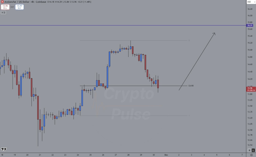 AVAX回调至12.96美元黄金区域,这一关键技术位正吸引大量交易者关注;Bitwise计划推出带质押功能的美国AVAX ETF,其收益率更高且费率低于竞争对手;随着价格在关键斐波那契支撑位形成结构,交易者密切关注15.71美元突破点位。