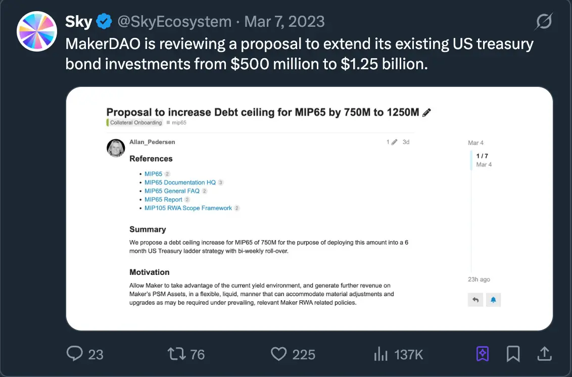 与此同时,稳定币发行方开始用短期票据支持储备,而诸如 Sky(前身为 Maker DAO)这样的协议也将链上的商业票据集成到其抵押资产池中。