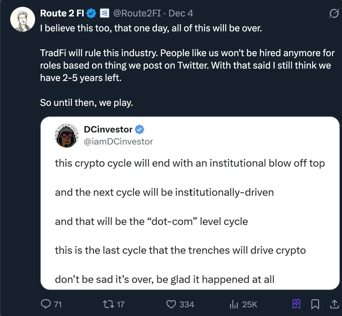 我认为,2025年见证了机构对加密市场流动性的全面掌控。在多年观望之后,机构资本终于超越了散户,成为市场的主导力量。