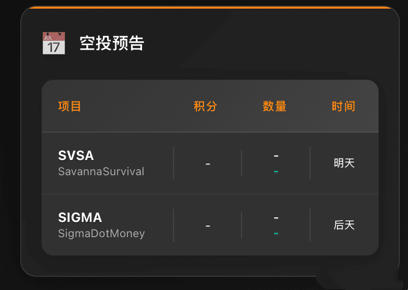 SigmaDotMoney SIGMA 10月21日 官方已确认上线,但空投详情"即将公布"。
