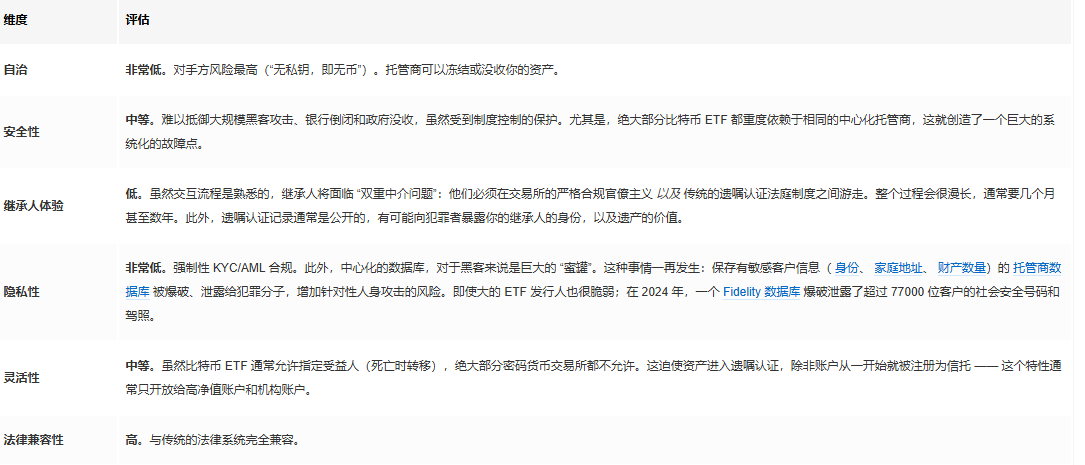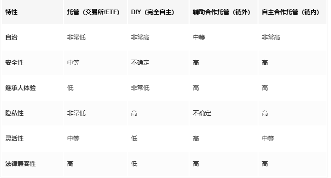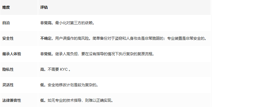 结论:最大化自治,但也最大化了复杂性和风险。这条路需要持有者和继承人都精通技术;而且常常带有误操作的高风险。