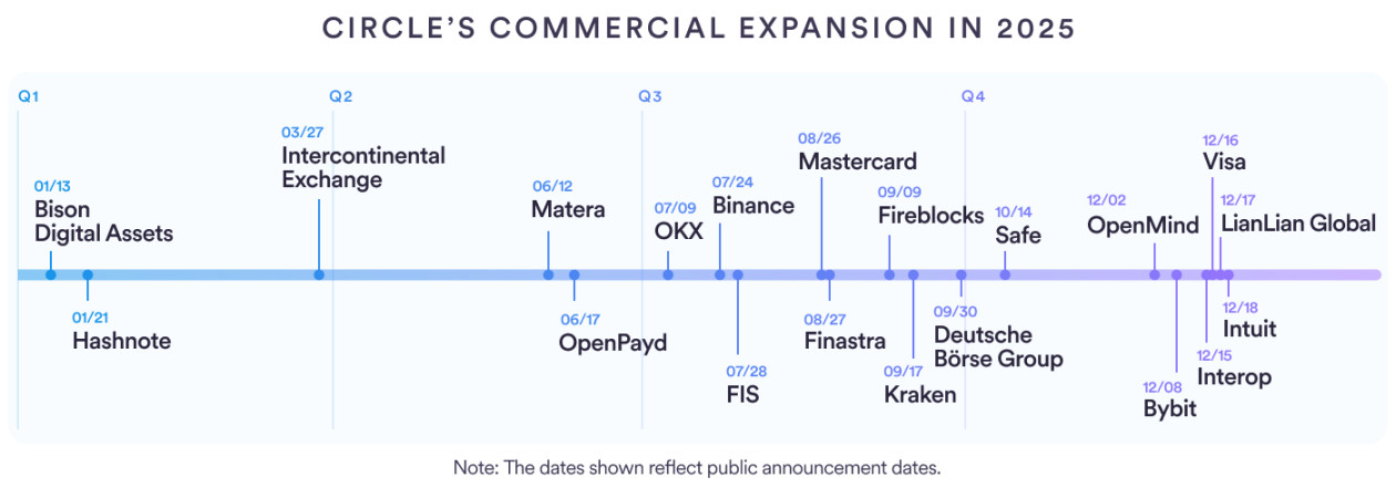 监管明晰催化2025年机构业务爆发式增长,全球市场基础设施提供商、金融科技企业、交易所纷纷与Circle合作,验证数字资产提升效率、降低风险的价值。