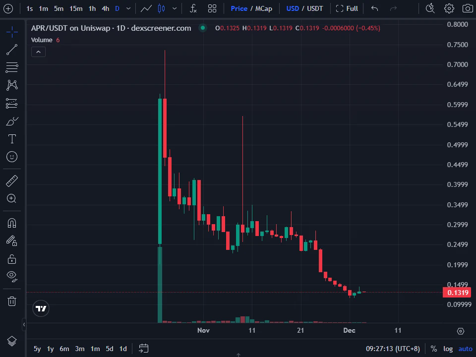 aPriori是Monad生态高融资项目,其代币APR在Monad主网上线前就选择在BNB Chain“提前”TGE。10月23日,APR上线币安Alpha与币安合约,开盘一度冲上0.7美元以上,但随后一路下行,目前已跌至0.13美元。开盘后价格疲弱本已让社区心有疑虑,而真正的引爆点出现在几周之后。