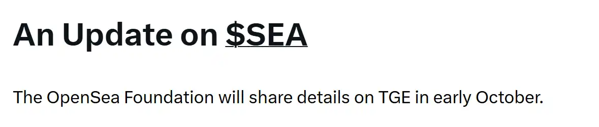 9月9日,OpenSea CMO Adam Hollander于发表在Twitter上的文章中透露,OpenSea基金会将在10月初发布TGE的具体细节。