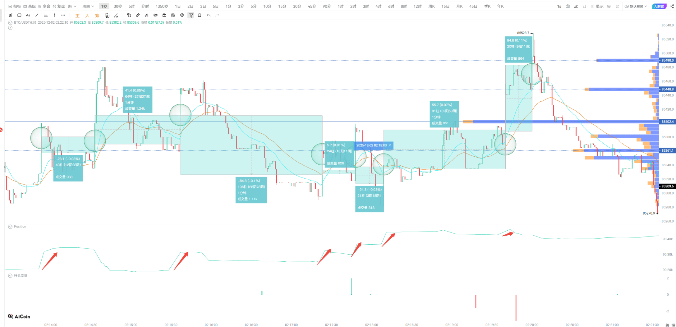 值得一提的是,昨天凌晨低位做多的大户简直赚麻了!在02:13~02:20这7分钟内,同一个大户先是在BTC完成建仓,随后又转战ETH