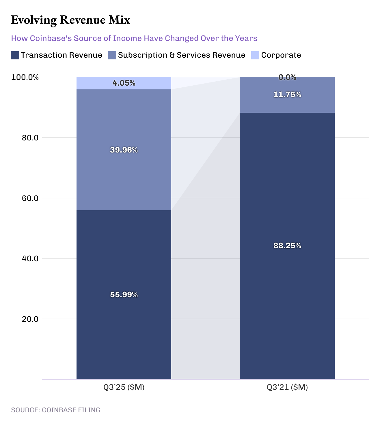 加密货币交易收入通常会随着熊市而消失,但现在却成为了不断增长的多产品Coinbase的一部分。