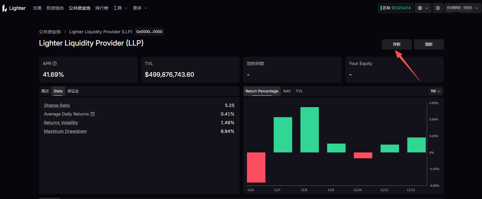 STEP 2:点击“公共资金池”后选择 LLP,存入资金,即可开始交易赚积分。