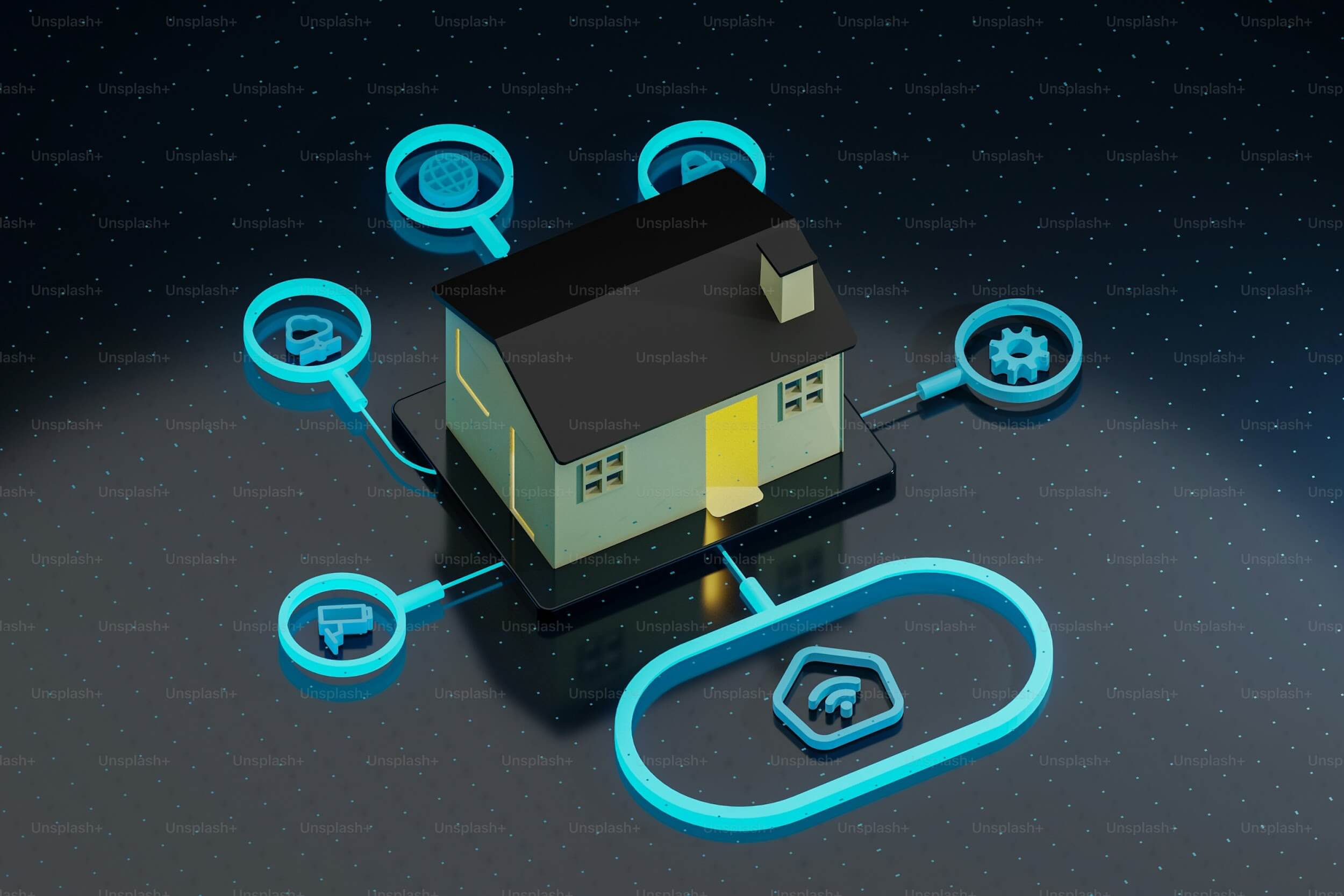 家庭挖矿:https://unsplash.com/photos/a-house-connected-to-a-network-with-blue-lights-zZrtuNA9TYU