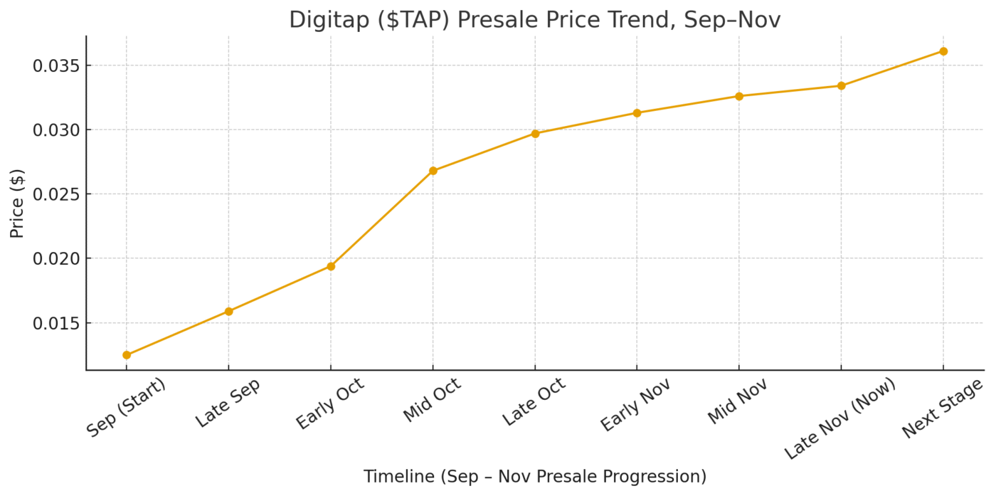当比特币即将结束七年来最惨淡的十一月时,Digitap却呈现截然不同的发展轨迹。凭借成熟的产品架构与为沉寂市场注入活力的黑色星期五活动,其预售已形成真实增长动能。对于$TAP早期买家及整个预售领域而言,这实际上堪称迄今为止最成功的月份。这充分证明即便市场整体低迷,优质项目仍能强势收官,在艰难的十一月环境中脱颖而出。