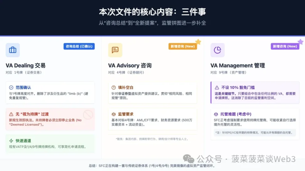 新增独立的 VA Advisory 牌照,是为了填补这一监管空白,确保「相同活动、相同风险、相同规管」原则的贯彻。