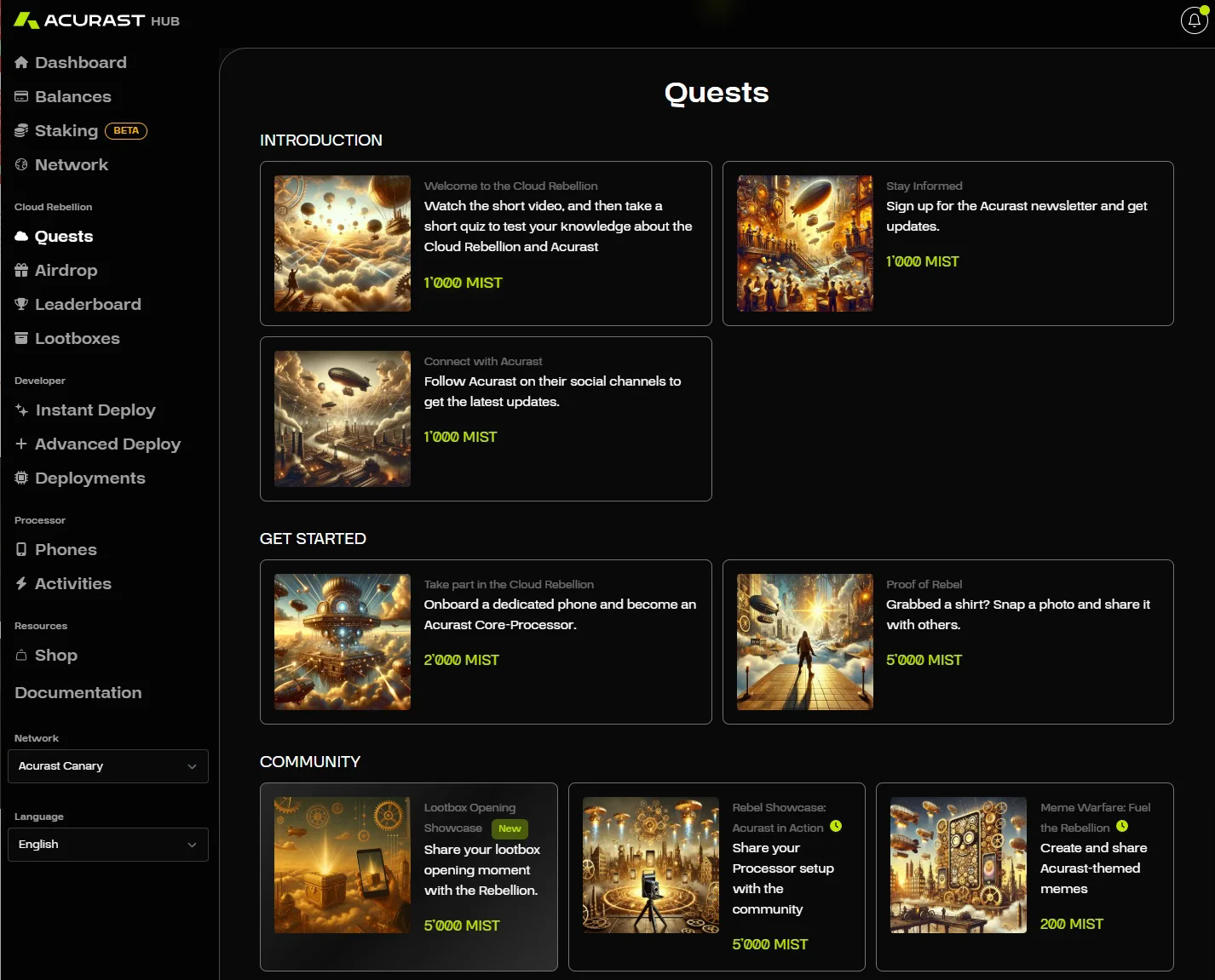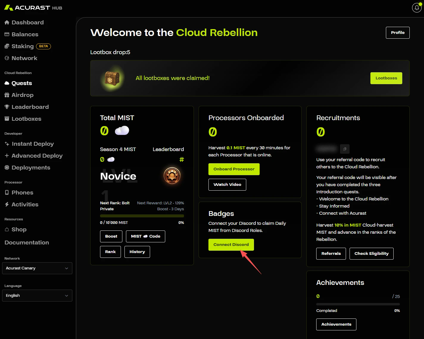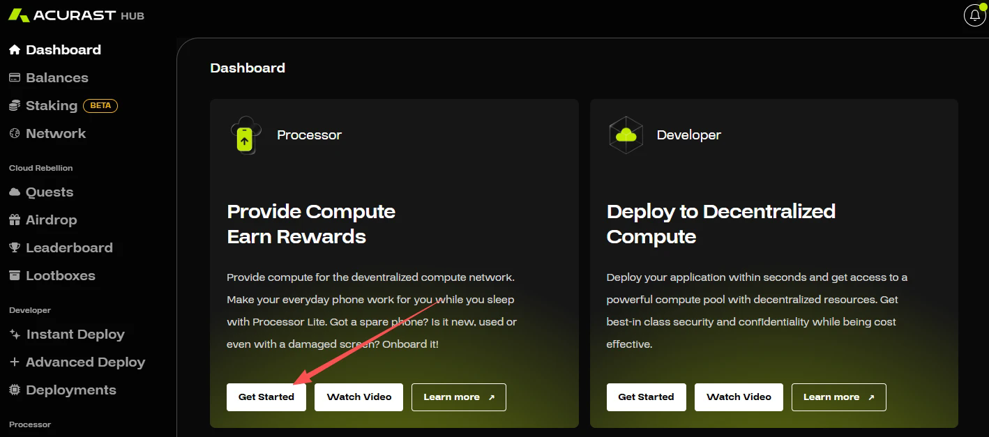 STEP 1. 进入交互网站(链接:https://hub.acurast.com/rebellion),点击“Join The Cloud Rebellion”后连接钱包即可登录。