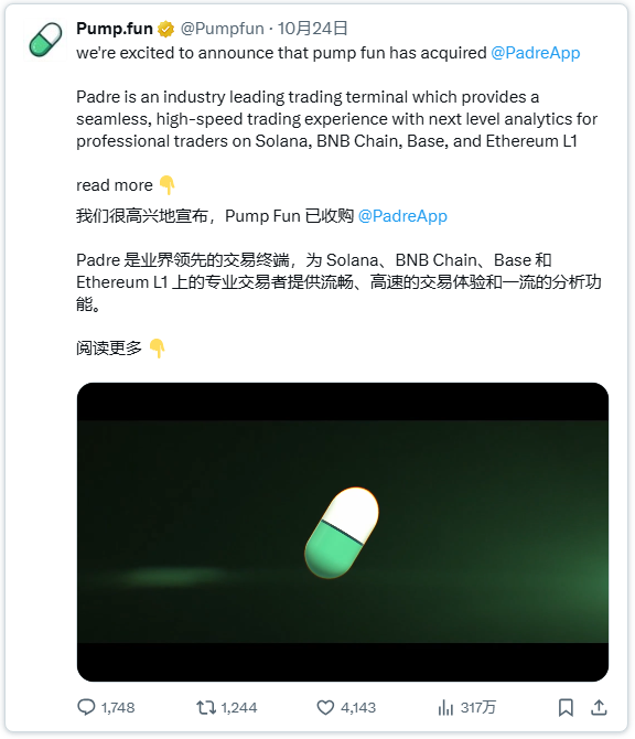 这收购帕德雷这印证了Pump打算超越Solana并触及多链受众的想法,目前已通过Padre前端实现了对BNB生态系统资产的支持。