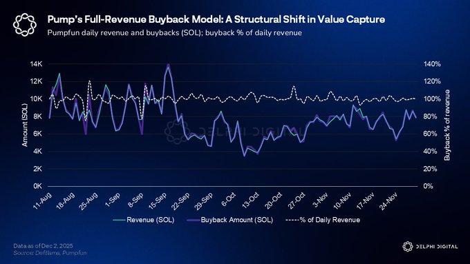 Pump最初计划仅将约四分之一的收入用于回购,但在市场明确表示部分回购策略无法获得回报后,该公司基本上全面采用了Hyperliquid风格的模式。这一转变在流动性不足且竞争激烈的山寨币市场中,助力Pump掀起了今年最强劲的大市值加密货币上涨行情之一。
