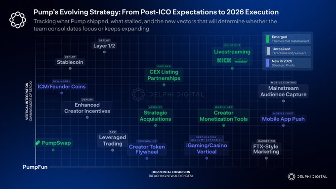 Pump要想在ICM取得成功,就需要采用治理结构,并吸引那些希望在链上运营的非加密货币团队,而Pump目前的大多数用户和创建者并不在链上。虽然如果团队能够做出实质性的投入,理论上存在一定的优势,但我认为这只是一个次要的或可选的方向,而不是Pump现有飞轮效应在2026年到来之际的自然延伸。