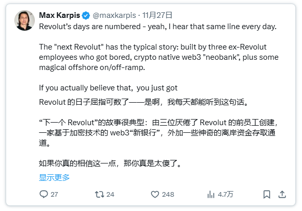 Max Karpis在这里完美地分析了为什么“新兴银行”(neobanks)在初期注定会失败。