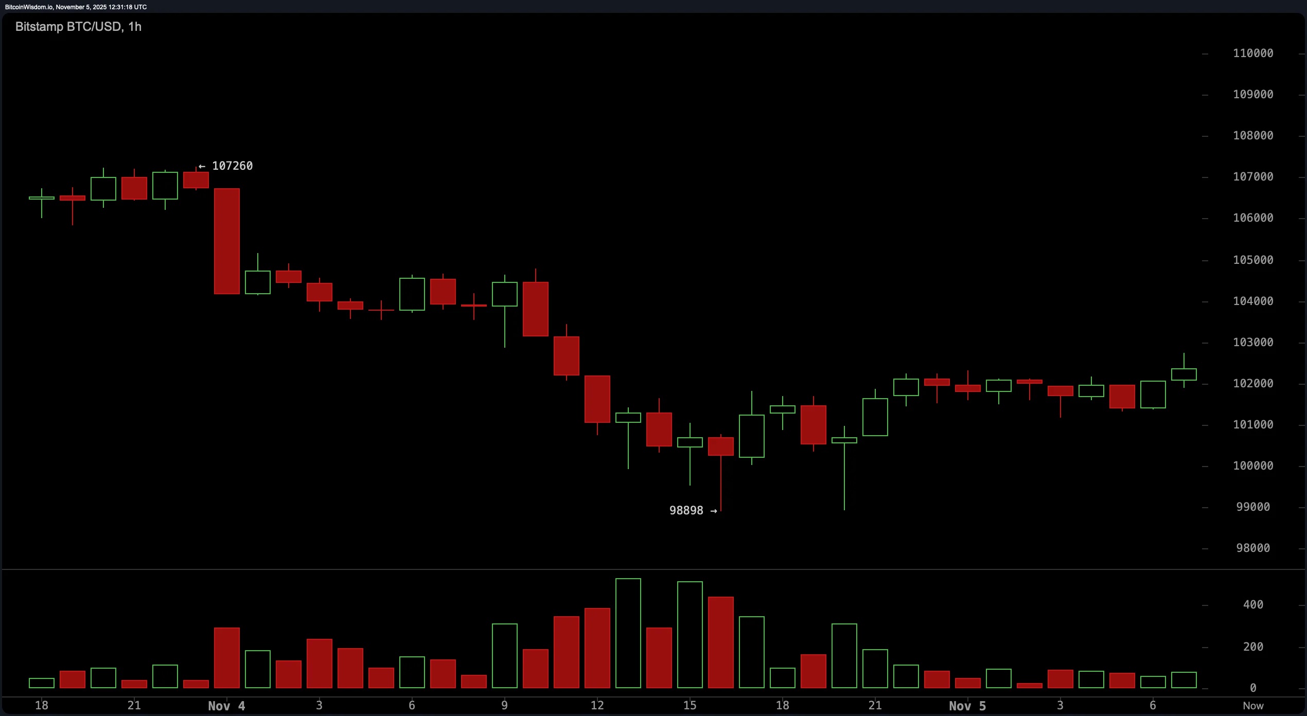 BTC/USD 1小时图,Bitstamp,2025年11月5日